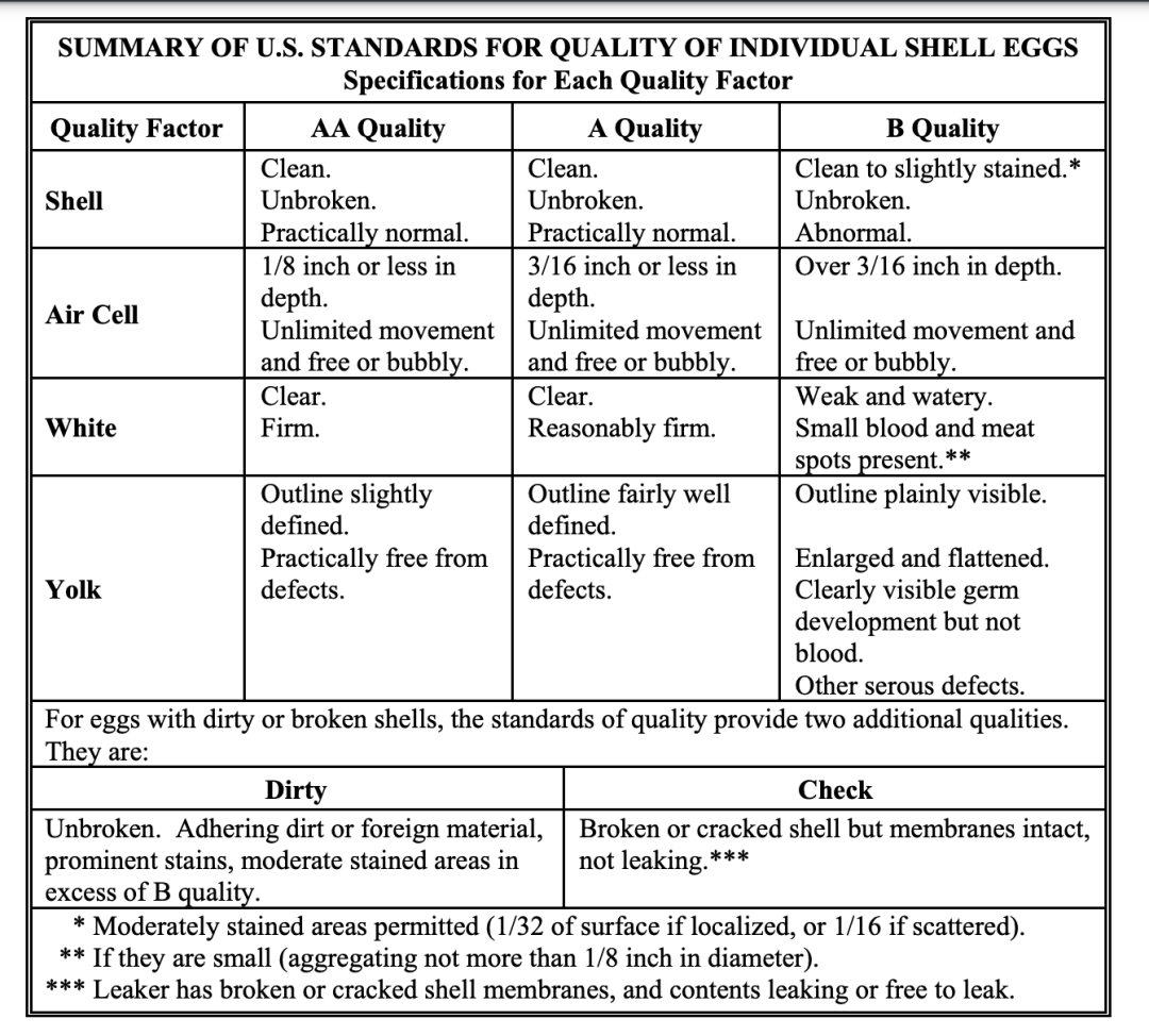 1)美國UDSA雞蛋分級標準(引自USDA)